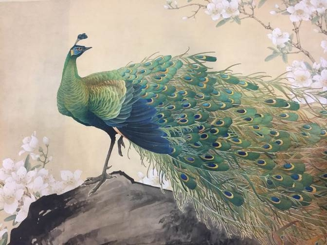 An embroidery work depicting azalea and a peacock, 1965 [Photo/Official WeChat account of the Suzhou Museum]