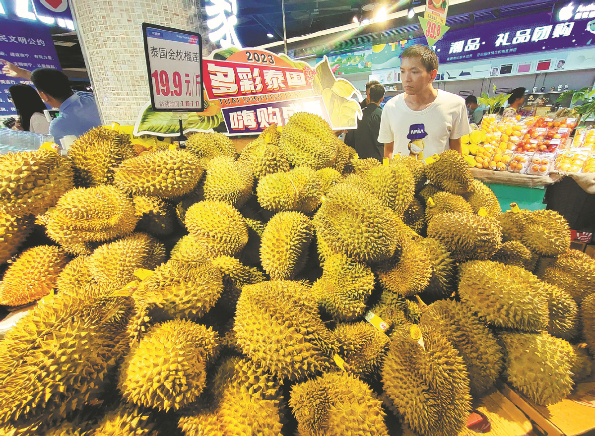 Upon completing the inventory of a fresh batch of durians, Nong Liqing, general manager of a trading company based in Pingxiang, swiftly coordinated the transportation of the spiky fruit to her clients in the neighboring Guangdong province and East China's Zhejiang province.