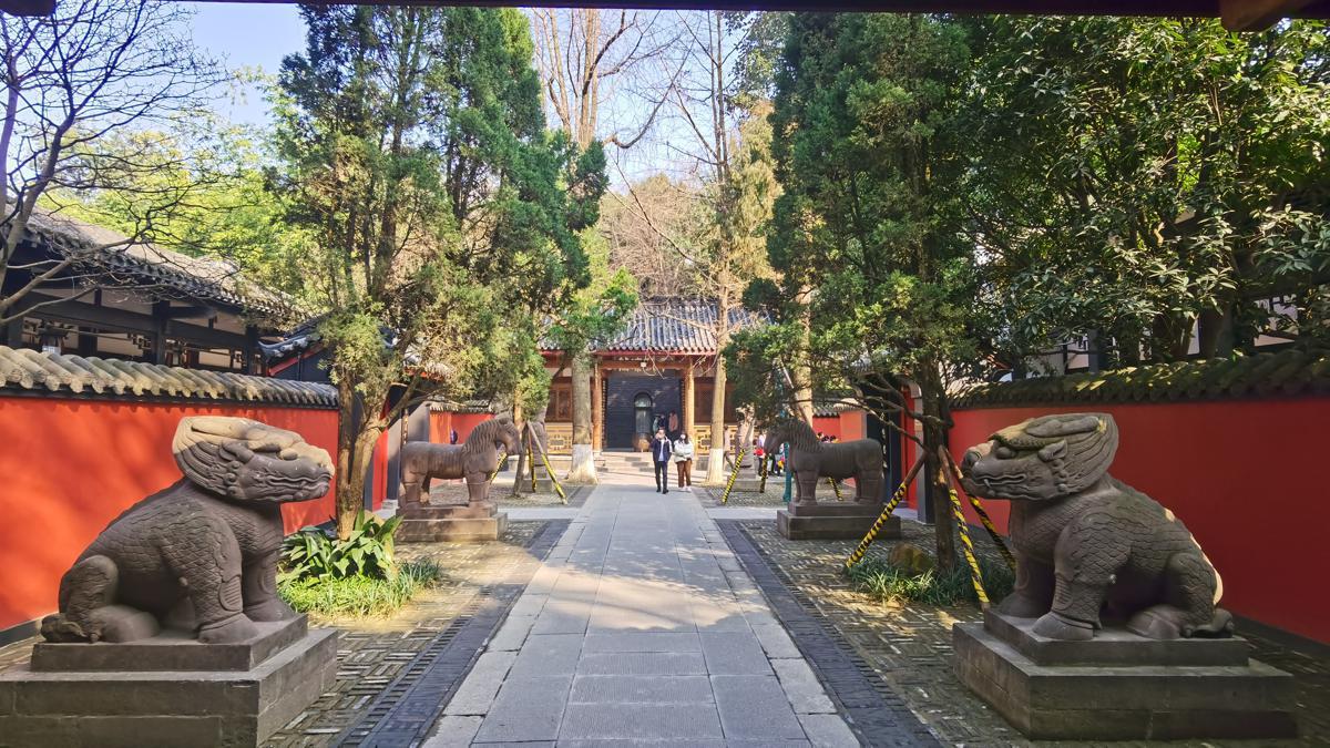 Tourists wander in front of Liu Bei's tomb in the Temple of Marquis Wu in Chengdu, Sichuan province.