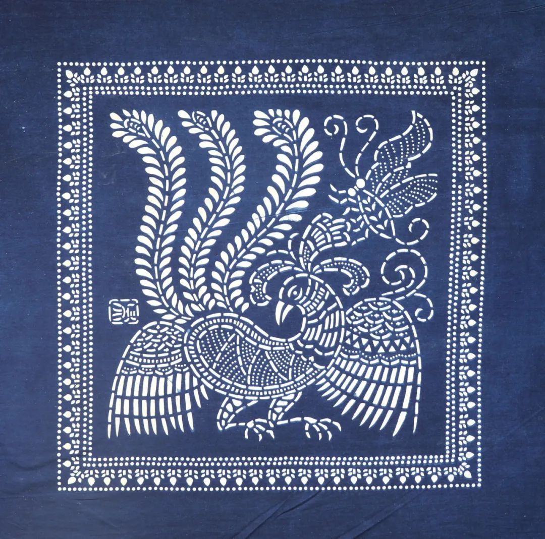 White cloth with blue patterns of phoenix, by Wu Yuanxin and Wu Lingshu [Photo/Official WeChat account of the Traditional Chinese Culture Museum]