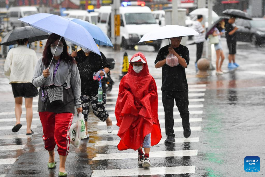 People walk amid the rain in Beijing, capital of China, July 30, 2023. [Photo/Xinhua]