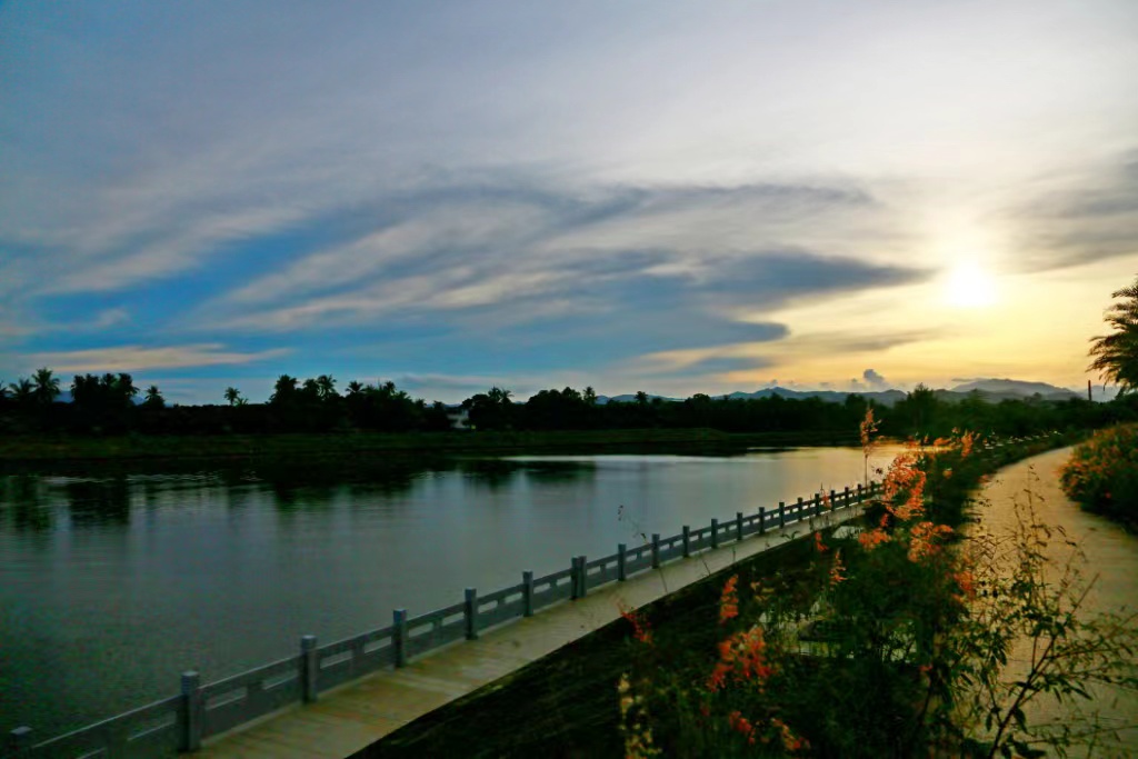 Check out the beautiful sunset at Haitang Bay in Sanya, Hainan province on July 27! The setting sun painted a breathtaking spectacle over the tranquil Tengqiao River, and the reeds gracefully swayed in the warm hues of the descending rays.