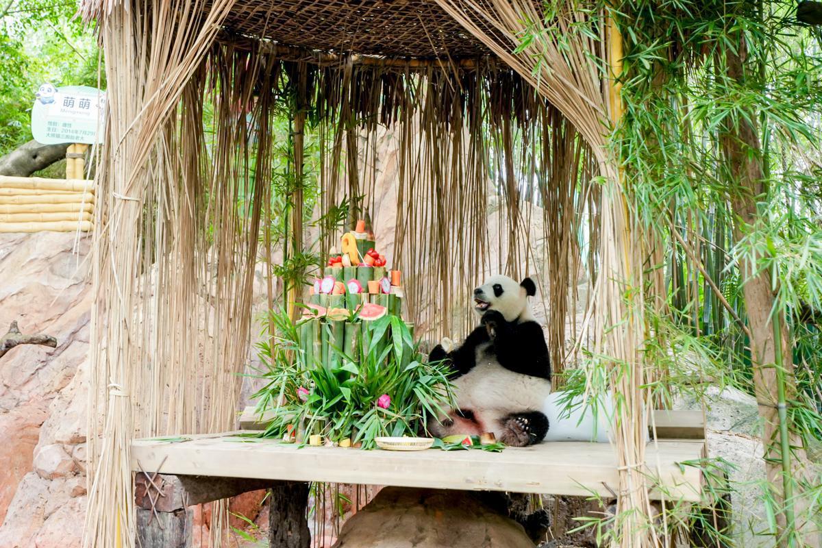 The world's only giant panda triplets - Meng Meng, Shuaishuai and Kuku - celebrated their ninth birthday at the Guangzhou Chimelong Safari Park. [Photo provided to chinadaily.com.cn]
