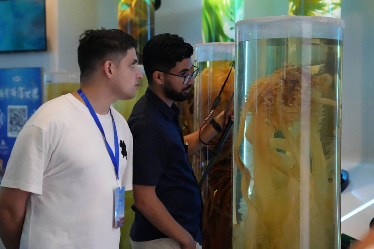 The group also had the chance to explore the Qingdao West Coast New Area's other pillar industries like shipping and aquaculture. For example, they visited Qingdao Port before heading to Qingdao Bright Moon Seaweed Group and the Luhaifeng Marine Ranch to discover the region's aquatic wonders. There, they were captivated by Asia's first fully automated container terminal powered by hydrogen and 5G networks.