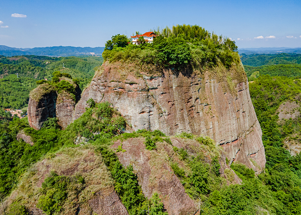 Located in the southern part of Nandu county, Jiangxi province, Fanzengzhai got its name for its resemblance to a steam pot. This “pot”, which is a mountain surrounded by cliffs, is 373 meters above sea level. In summer, its Danxia landform and flourishing trees constitute a stunning scene.