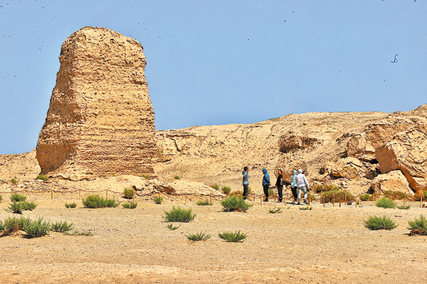 Deep in the Gobi Desert in Northwest China's Gansu province, remnants of the Han Dynasty (206 BC-AD 220) Great Wall stand firm. One layer of fine sand, plus a layer of reeds or rose willow, tier upon tier, has made it through two millennia, from a military installation to a representative living heritage.