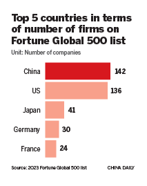 A total of 142 Chinese companies, including those in Taiwan, made it to the annual list, marking the fifth consecutive year that Chinese companies topped the list in terms of number. The US and Japan followed with 136 and 41 enterprises, respectively.