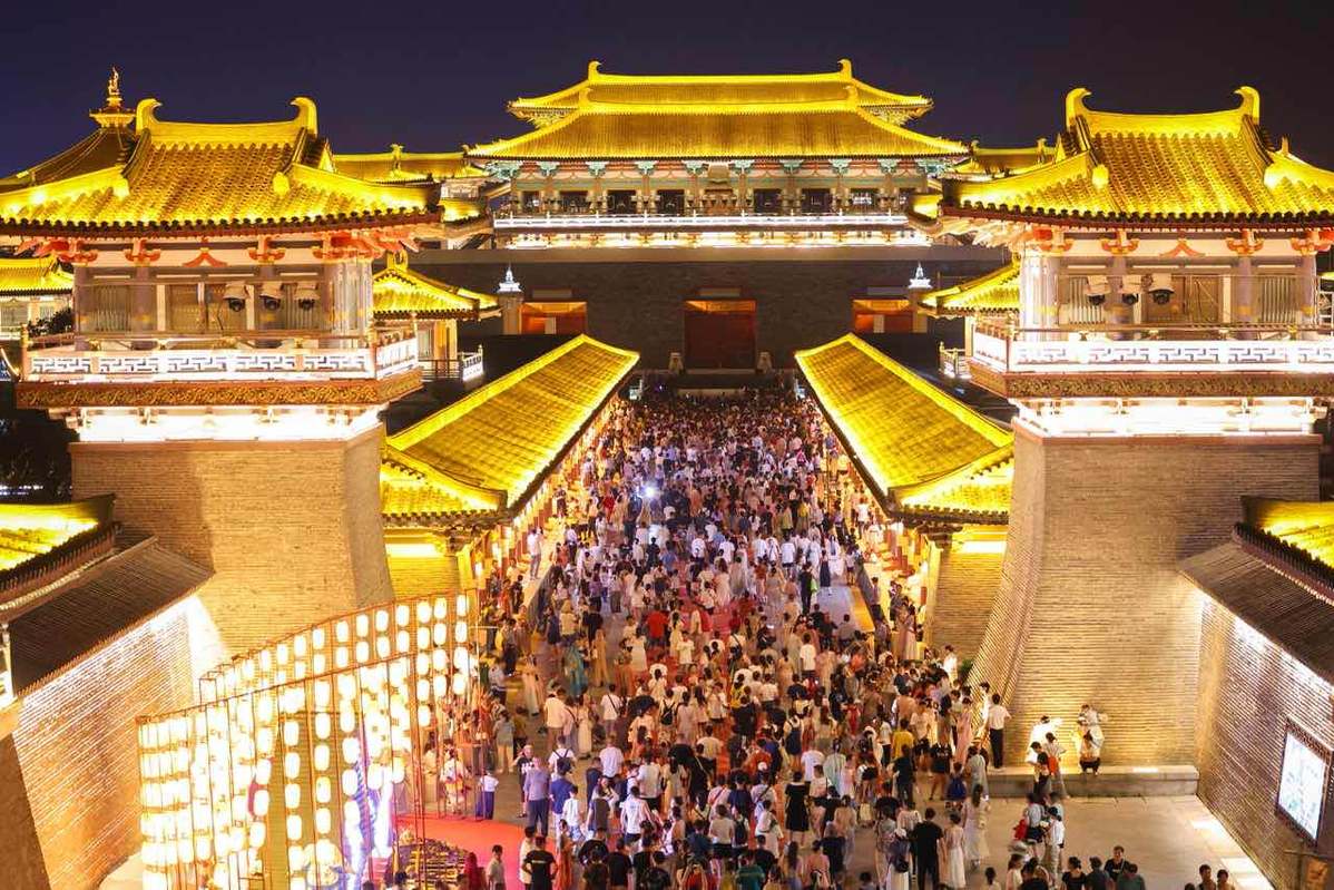 Sheng Shi Tang Cheng in Xiangyang, Hubei province, draws many visitors at night. [Photo provided to chinaservicesinfo.com]