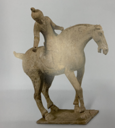 Painted pottery figurine of a woman playing polo [Photo/Official WeChat account of the Kuahuqiao Site Museum]
