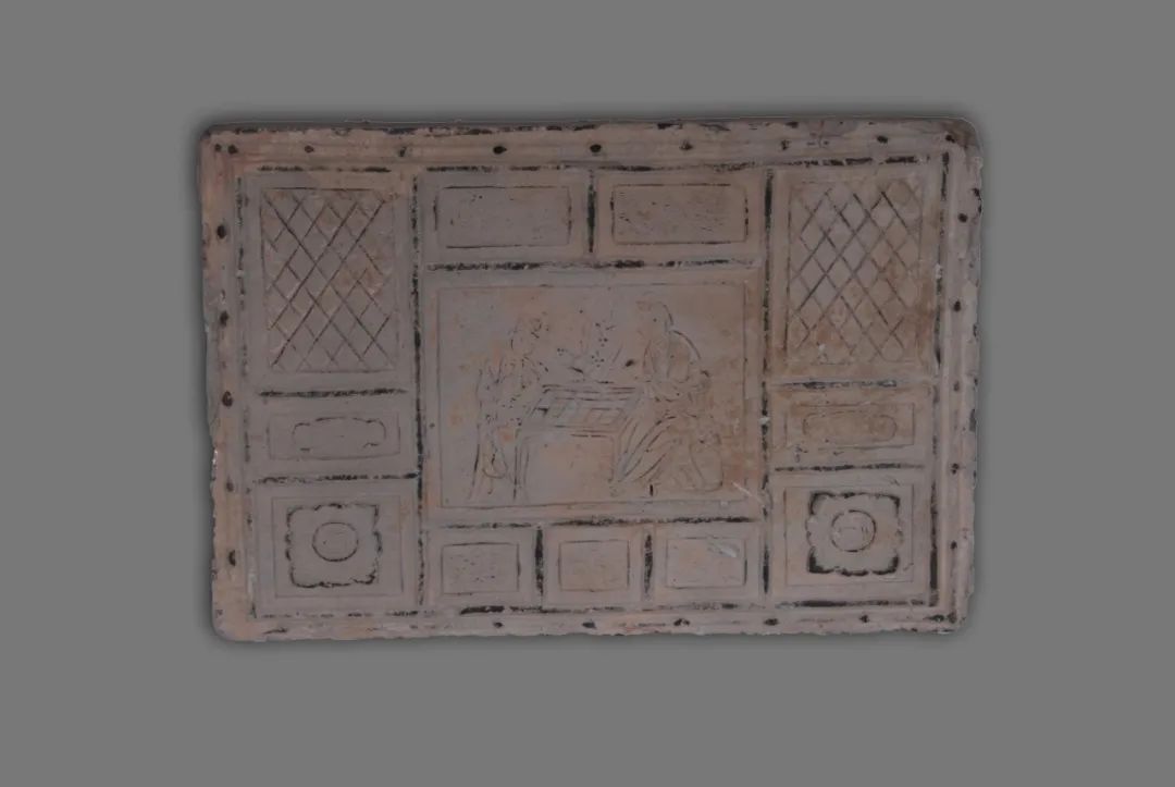 Relief brick depicting two people playing chess [Photo/Official WeChat account of the Kuahuqiao Site Museum]