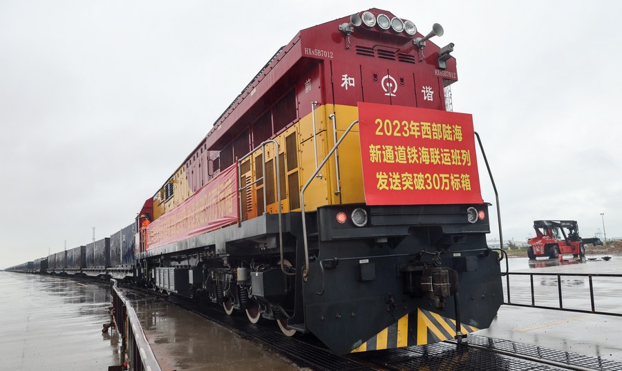 NANNING -- China's rail-sea intermodal trains are expected to make over 9,000 trips along the New International Land-Sea Trade Corridor this year, according to a press conference held by South China's Guangxi Zhuang autonomous region on Thursday.