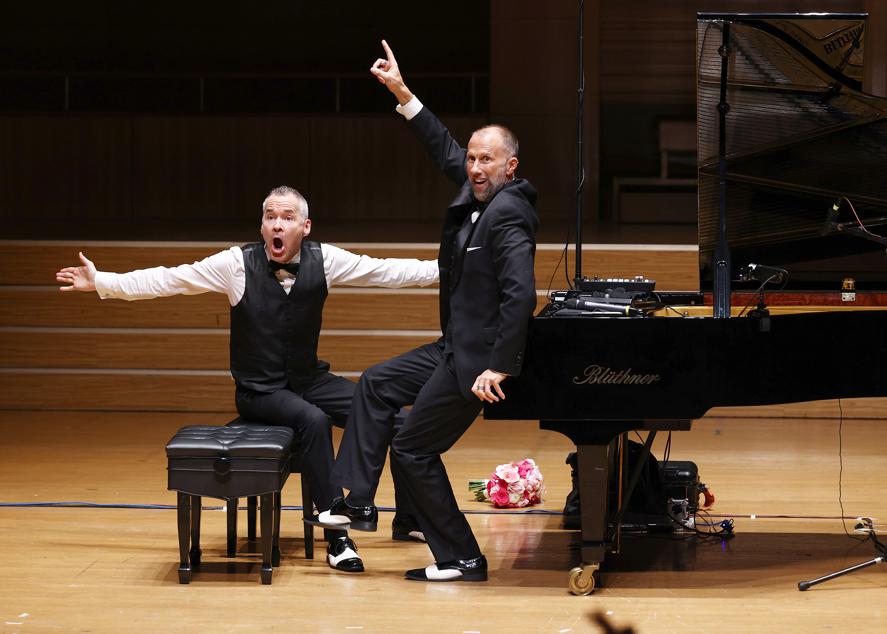 German piano duo Pianotainment presented an interactive concert at Beijing Concert Hall on Thursday. [Photo provided to China Daily]