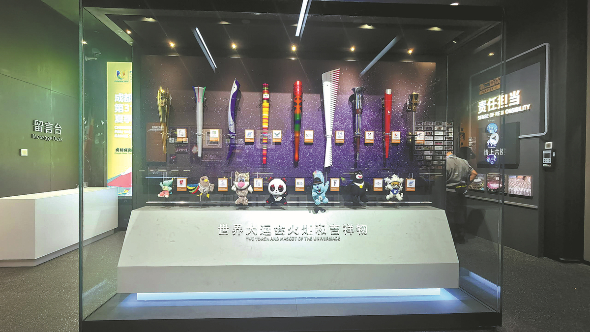 Among the exhibits in the museum are the "three treasures" of the Chengdu games — Ronghuo, Rongguang and Rongbao, explained Zhang Ruiqin, a leading official with the executive committee of the Chengdu games.