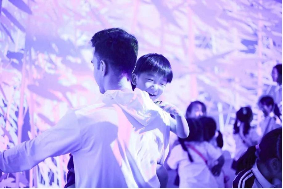 Children visitors have an immersive experience of the exhibition at which animated images of works on show are projected on screens. [Photo provided to China Daily]