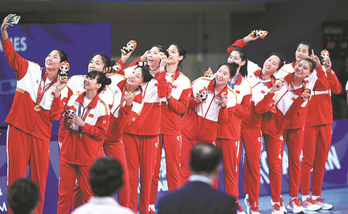 "We were aiming for the gold during pregame training, and we made it!" said spiker Wu Mengjie, the top scorer on the Chinese side with 16 points. Fellow spiker Zhong Hui and opposite Zhou Yetong recorded 15 and 12 points, respectively.