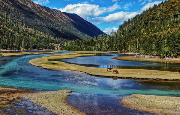 Mugecuo Scenic Area, also known as Scenic Spot of Kangding Love Song, is endowed with high peaks, dense forests, clear lakes and vast grasslands.