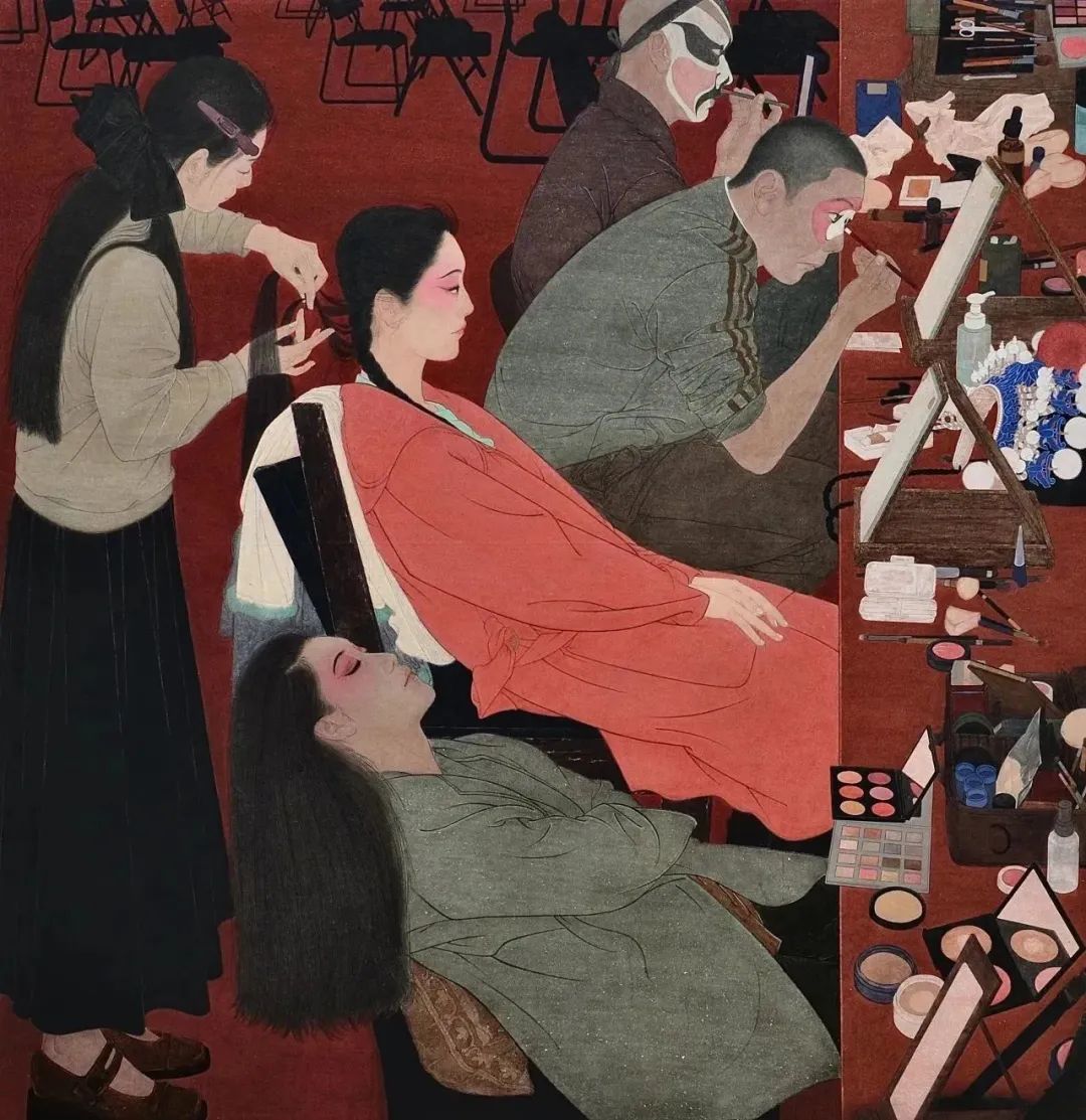 A traditional Chinese painting depicting a backstage scene, 2023, by Ye Cong [Photo/Official WeChat account of the Hubei Museum of Art]
