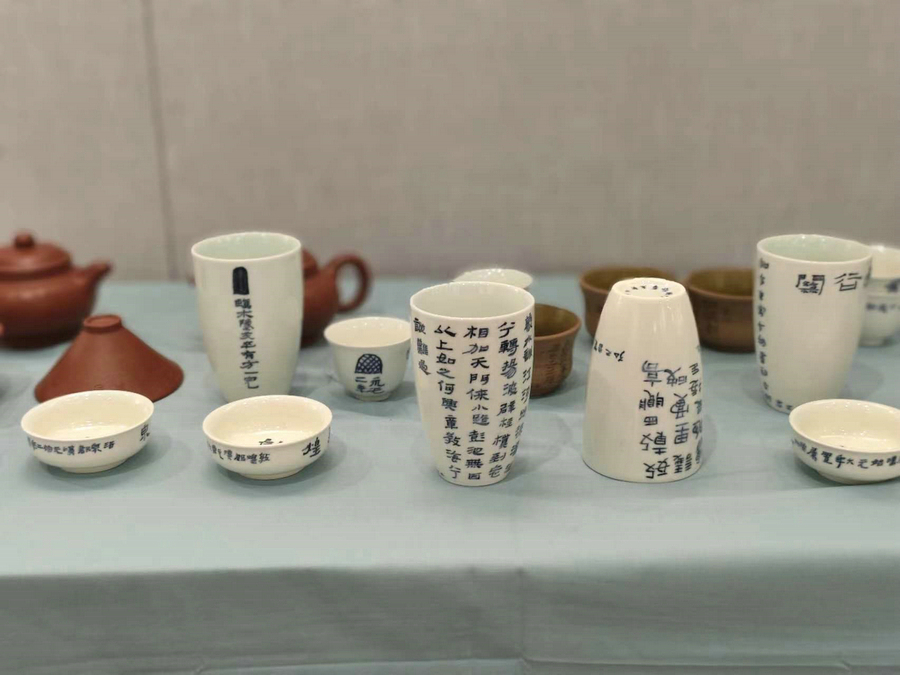A jiandu-inspired tea set is on view at the Museum of Northwest Normal University in Lanzhou, capital of Northwest China’s Gansu province on July 31, 2023. [Photo by Yang Xiaoyu/chinadaily.com.cn]