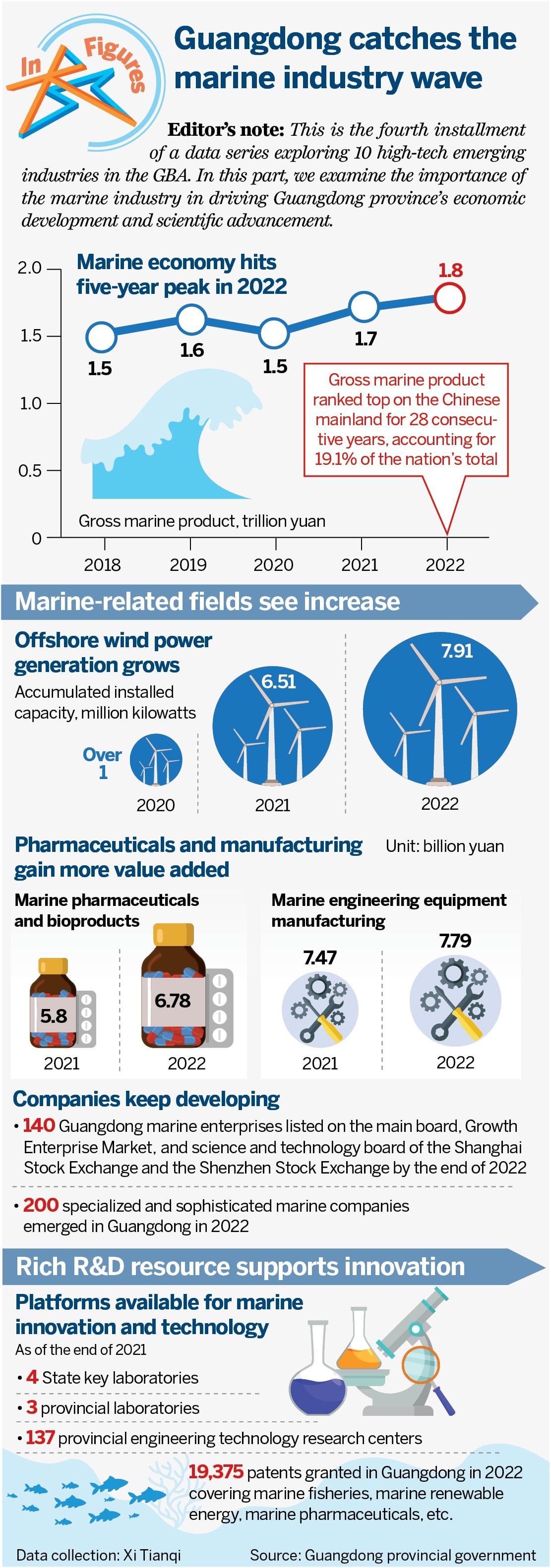 Editor's note: This is the fourth installment of a data series exploring 10 high-tech emerging industries in the GBA. In this part, we examine the importance of the marine industry in driving Guangdong province's economic development and scientific advancement.