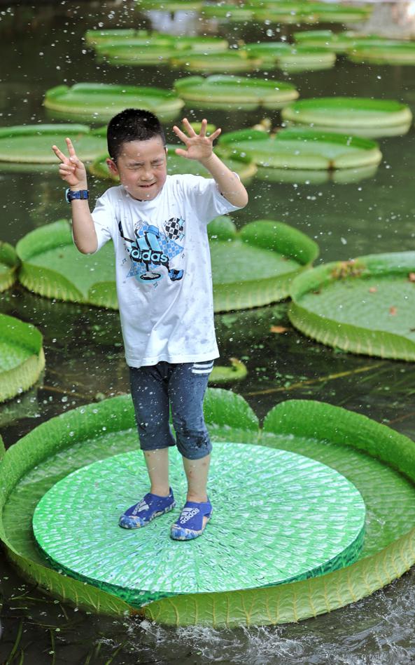 A child stands on a giant lily pad at a pond at the Wuhan Botanical Garden in early August. [Photo by Jiang Wen/For chinadaily.com.cn]