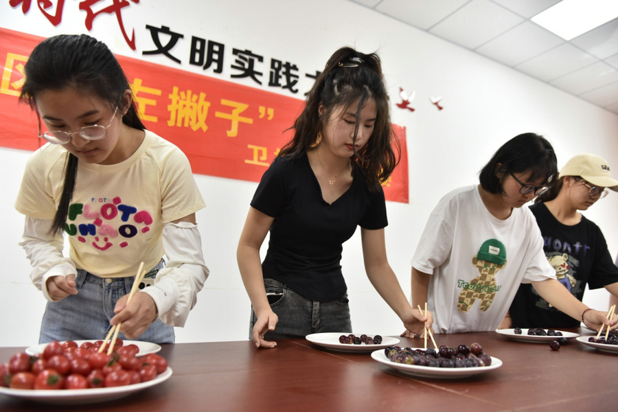 A photo taken on August 9, 2023 shows residents taking part in a series of fun contests held by a local community in Hefei, Anhui province. [Photo/CGTN]