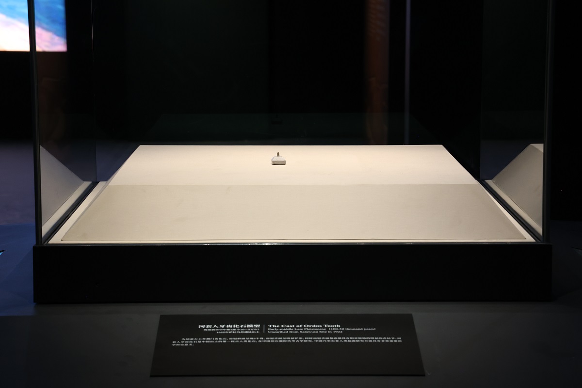 The cast of Ordos tooth is on display at the Salawusu Site Museum. [Photo/provided to chinaservicesinfo.com]