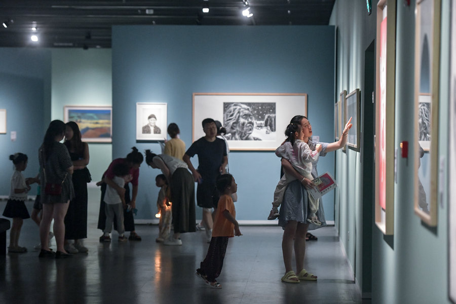 Drawing For Mom, an exhibition at the Taicang Art Museum in Taicang, Jiangsu province, features 97 paintings focusing on the subject of mothers. [Photo provided to China Daily]