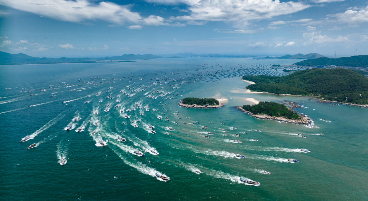 More than 900 fishing boats set sail from Zhapo harbor in Yangjiang, Guangdong province, as the seasonal fishing moratorium in the South China Sea ended on Wednesday.