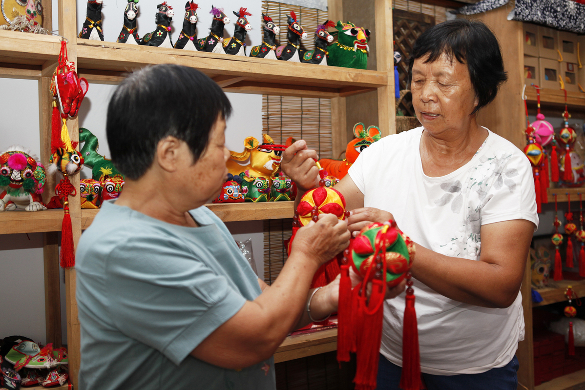 Residents of Zhaokang village in Xiangfen county of Linfen, Shanxi province, present their work — traditional Taiping silk balls. [Photo by Li Xianjun/For chinadaily.com.cn]