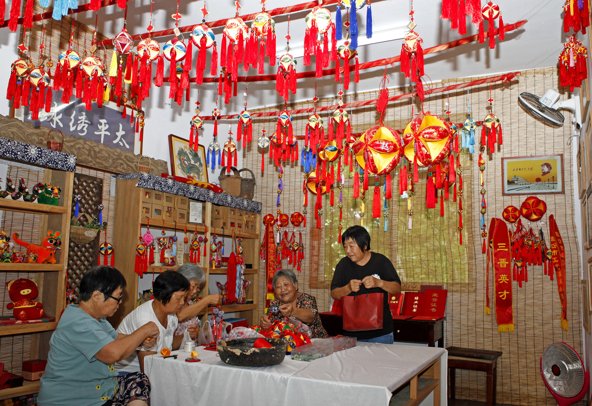 Residents of Zhaokang village in Xiangfen county of Linfen, Shanxi province, make traditional Taiping silk balls. [Photo by Li Xianjun/For chinadaily.com.cn]