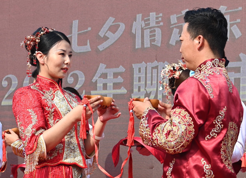 Many couples intentionally choose the day of Qixi Festival to participate in group weddings along with other newlyweds, collectively witnessing and recording moments of happiness.