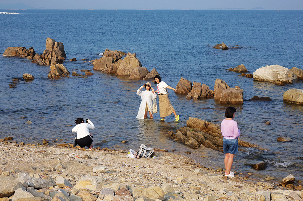 Tourists pose for photos at the Liansan Island in Qingdao, Shandong province. [Photo/IC]