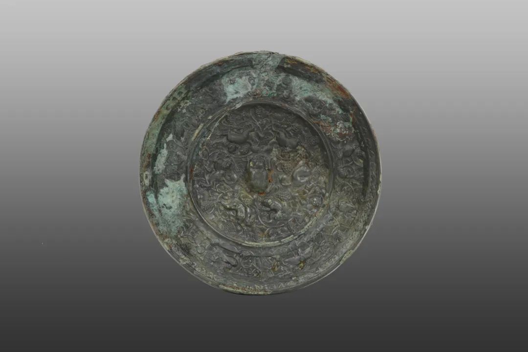 Bronze mirror with beast and grape patterns, Tang Dynasty (618-907) [Photo/Official WeChat account of the Zhangjiagang Museum]