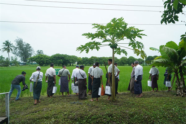 Farmers visit the 30-acre Yuntianhua rice demonstration field, which is a collaboration between Kunming-based Yuntianhua Group and Myanmar's ministry of agriculture. [Photo by Duan Shaotong/For chinadaily.com.cn]