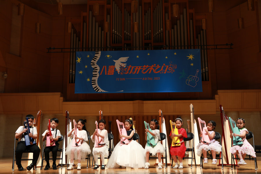 Students at the closing concert for the four-day harp summer camp on Aug 15. [Photo by Su Guanming/For China Daily]