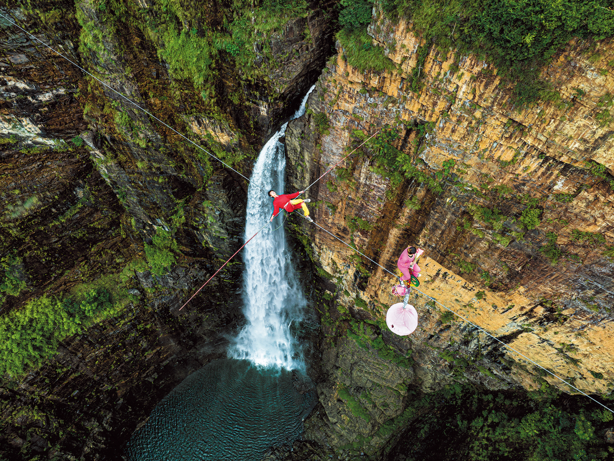At the Juda Canyon scenic area, a thin steel wire hangs above the gorge, and on that wire, a thrilling high-altitude performance takes place nearly every day.