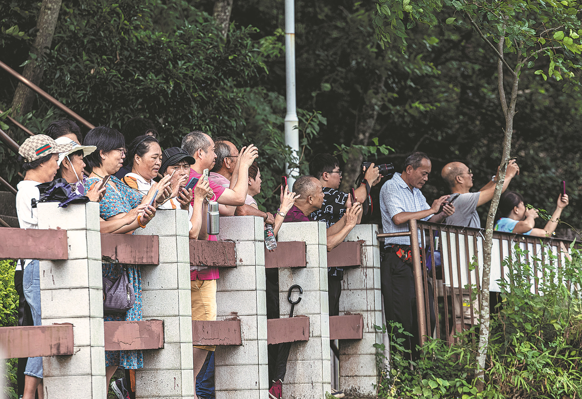 Visitors use their mobile phones to record the couple's performance at the park. [Photo by Zhang Youqiong/Wang Juntao/Chen Kaijin/Ye Qihan/For China Daily]