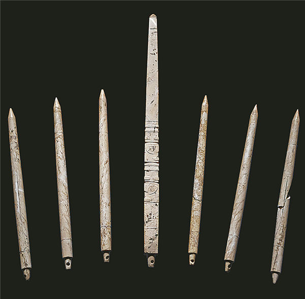 Jade awl-shaped objects. [Photo by Gao Erqiang/China Daily]