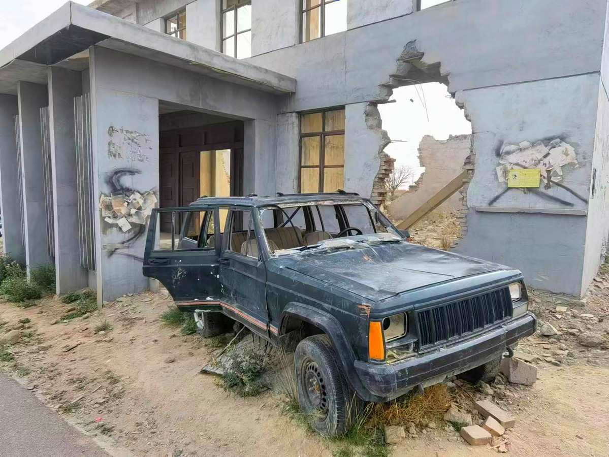A car in an abandoned town in Jiuquan of Gansu province [Photo by Dong Yuhan/provided to chinaservicesinfo.com]
