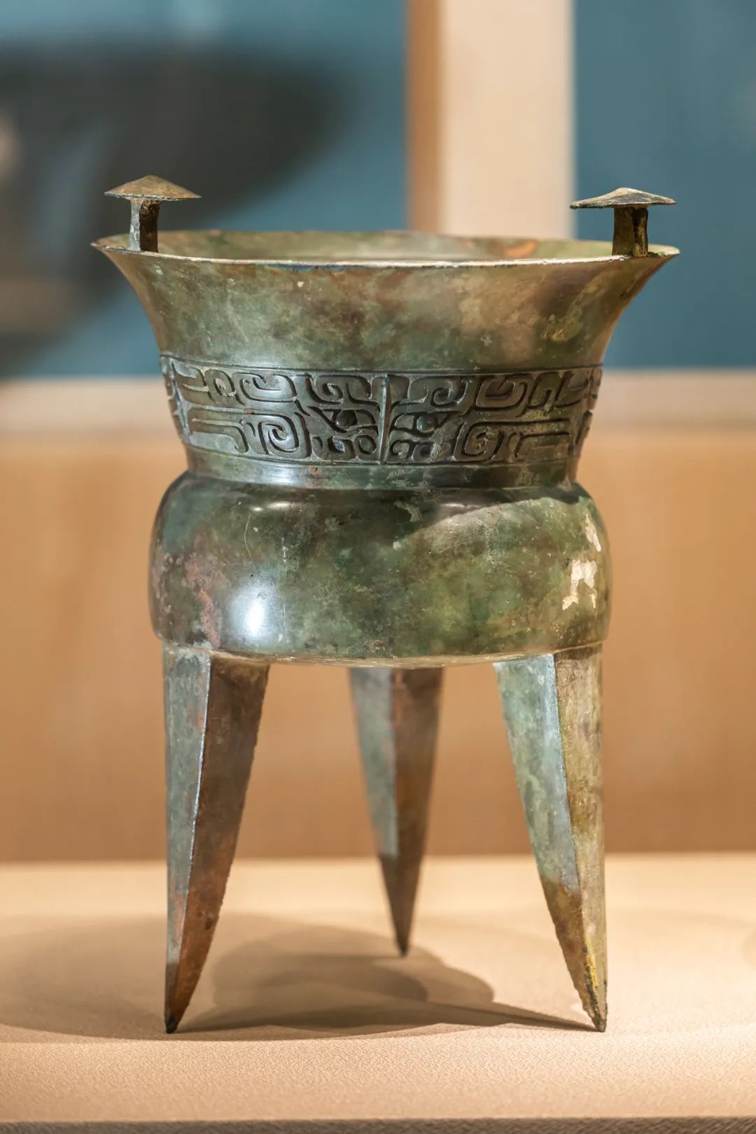 Bronze jia (goblet-shaped wine warmer) with beast mask patterns, from the collection of the Hubei Provincial Museum [Photo/Official WeChat account of the Museum of the Western Han Dynasty Mausoleum of the Nanyue King]