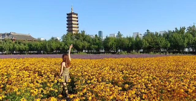 As early autumn arrives, a sea of flowers in Beihu National Wetland Park in Changchun, Jilin province, has burst into full bloom, offering tourists picturesque views.