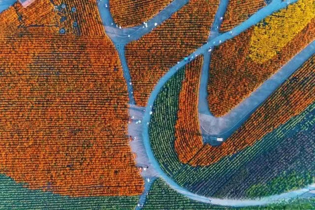 An aerial photo shows a sea of flowers in Beihu National Wetland Park in Changchun, Jilin province. [Photo by Bai Shi/For chinadaily.com.cn]