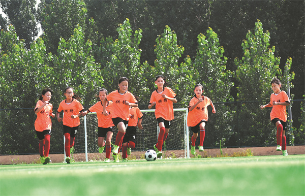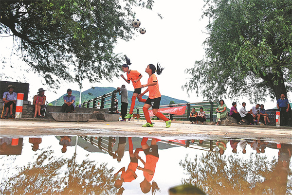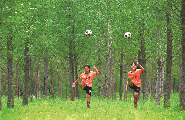 In the small mountain village of Zhaozhuang in Yiyuan county, Shandong province, there is a group of soccer-loving girls.
