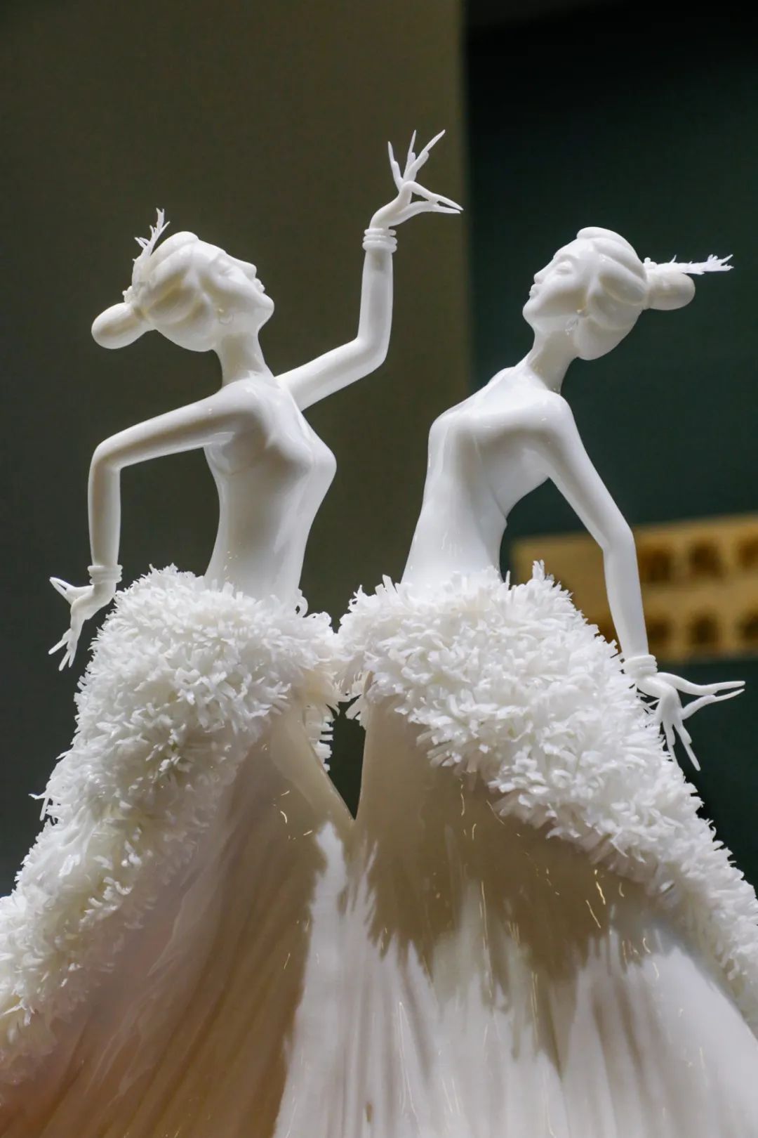 Contemporary Dehua white porcelain artwork depicting two female dancers [Photo/Official WeChat account of the National Museum of China]