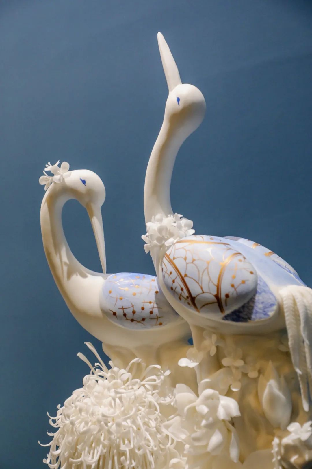 Contemporary Dehua white porcelain artwork depicting two cranes [Photo/Official WeChat account of the National Museum of China]