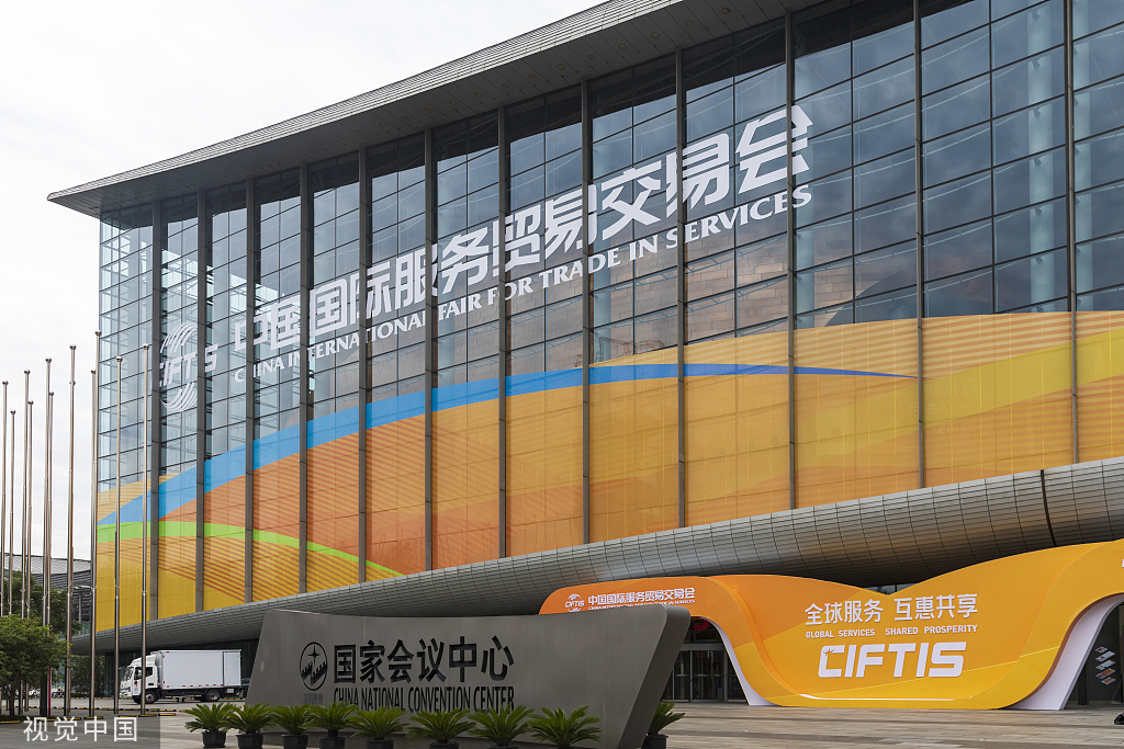 Photo taken on Aug 26, 2023, shows a view of the China National Convention Center, a venue of the 2023 China International Fair for Trade in Services, in Beijing. [Photo/VCG]