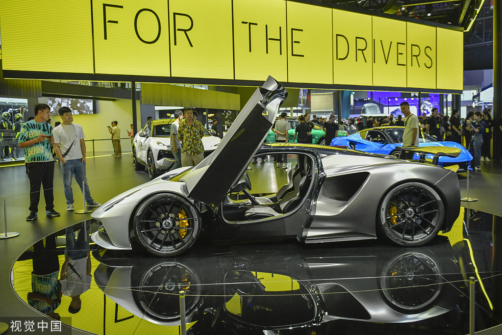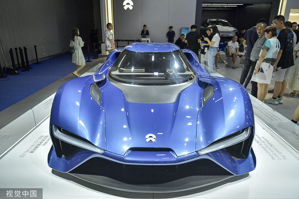 The EP9, an all-electric sports car from Chinese electric car startup Nio, is displayed at the Chengdu Motor Show on Aug 29, 2023. The auto show, which will conclude on Sunday, has attracted more than 120 brands from home and abroad to showcase some 1,600 models. [Photo/VCG]