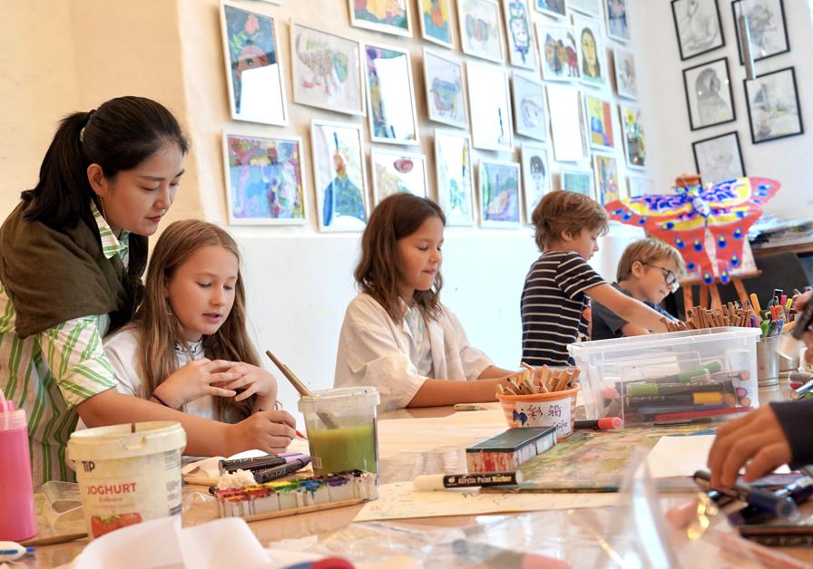 German students and others from overseas experienced the artistic charm of kite culture at an international art center in Germany from Sunday to Wednesday. [Photo by Wang Lin/For chinadaily.com.cn]