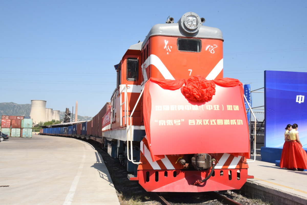 It's the first China-Europe (Central Asia) freight-train to take off from Zhangjiakou, and is aptly named Jingzhang, which represents the combined cities of Beijing and Zhangjiakou.