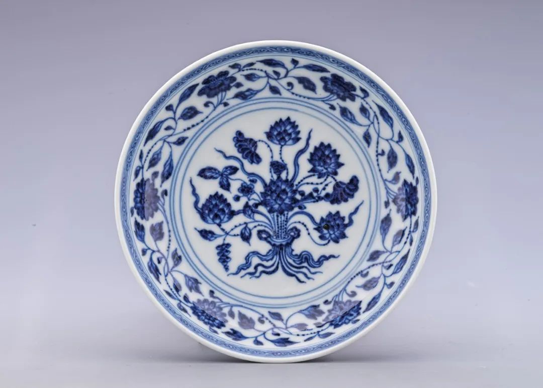 Blue-and-white plate with lotus patterns, Yongzheng reign of the Qing Dynasty [Photo/Official WeChat account of the Liaoning Provincial Museum]